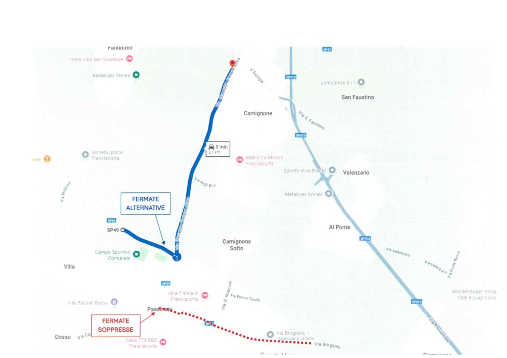 Si avvisa la clientela che dal giorno 8 (ore 8:00) al giorno 15 Ottobre (ore 13:00) saranno soppresse le fermate di Passirano centro.