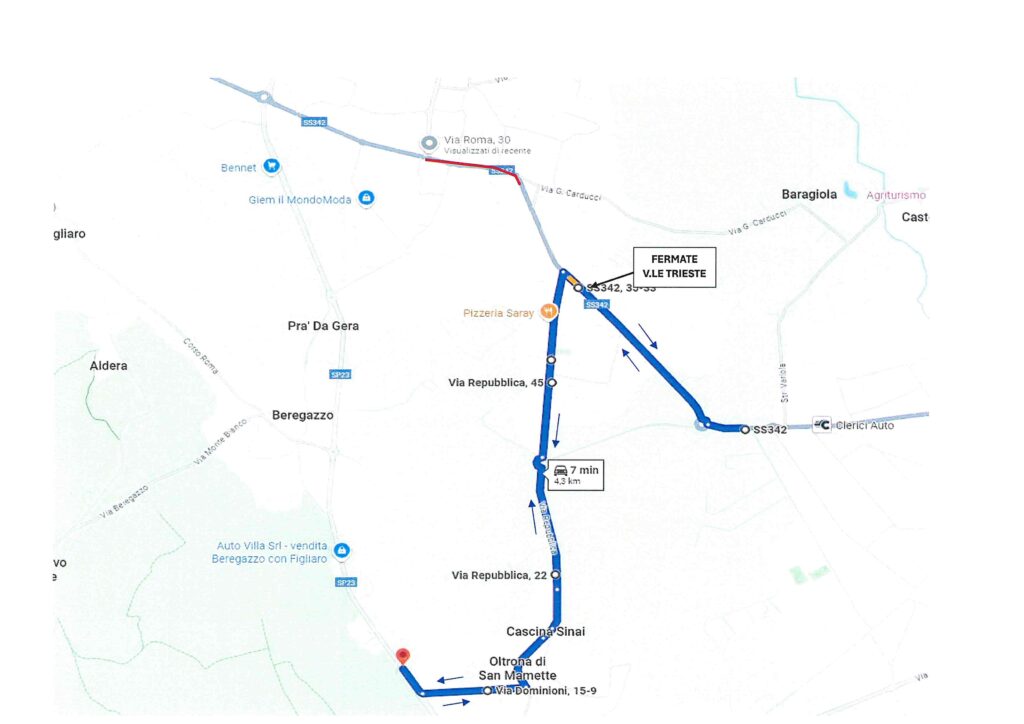 A causa di lavori stradali sulla SS342 nel comune di Olgiate Comasco, dal 15 al 18 Ottobre nella fascia oraria 20:00 – 06:00, le uniche fermate utili saranno quelle di viale Trieste.