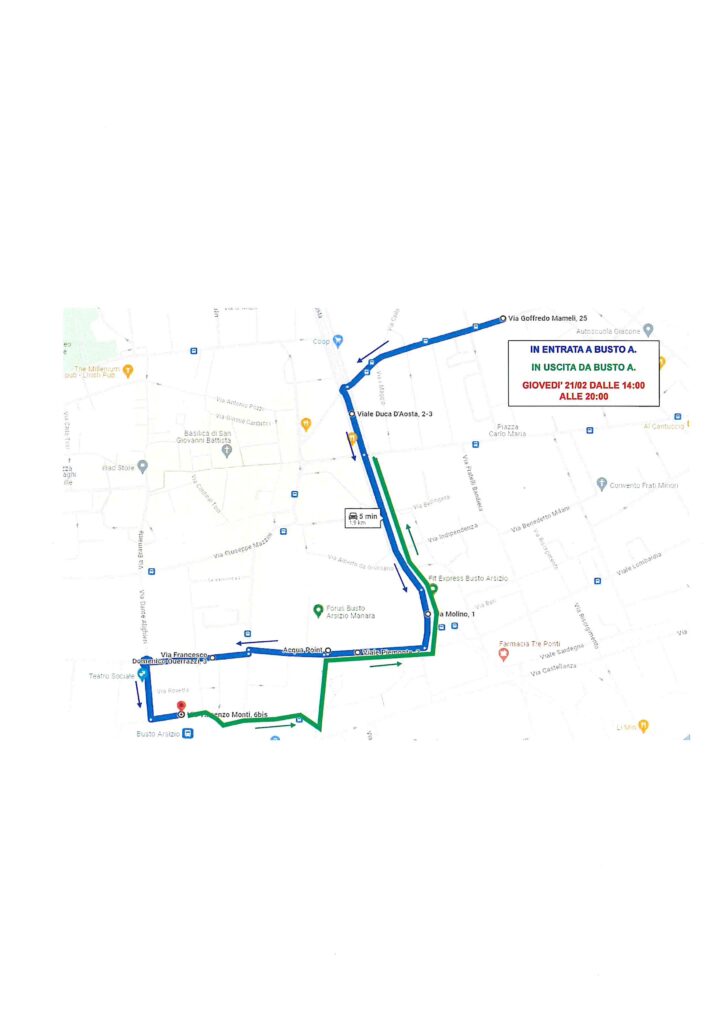Si avvisa che il giorno 21 Febbraio causa chiusura del centro di Busto Arsizio per il transito del corteo di Carnevale saranno soppresse le fermate di piazza Trento e Trieste.